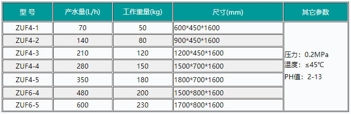 几种定型卷式超滤器技术参数如下表: