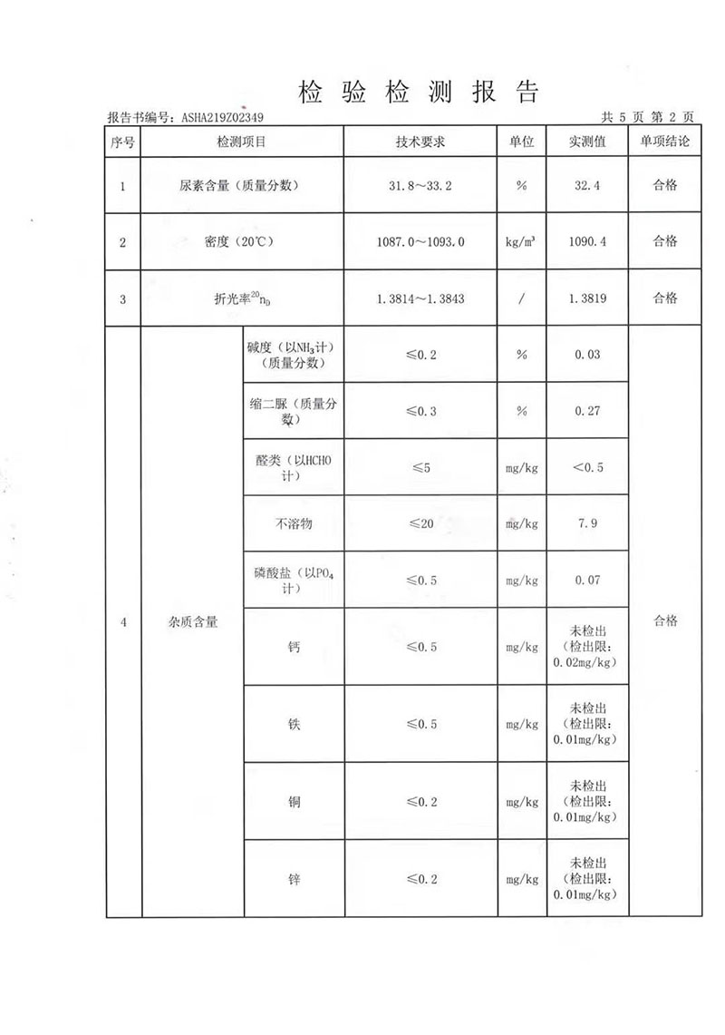 前不久,鲁总公司所生产的车用尿素液在当地加油站被四川省市场监督管理局抽检,所有指示均符合国标GB29518-2013标准。这个抽检鲁总当时并不知情,直到收到检测报告时才明白是怎么回事。他特意打电话告诉我们这件事,并表示我们设备品质过硬,经得起检验。